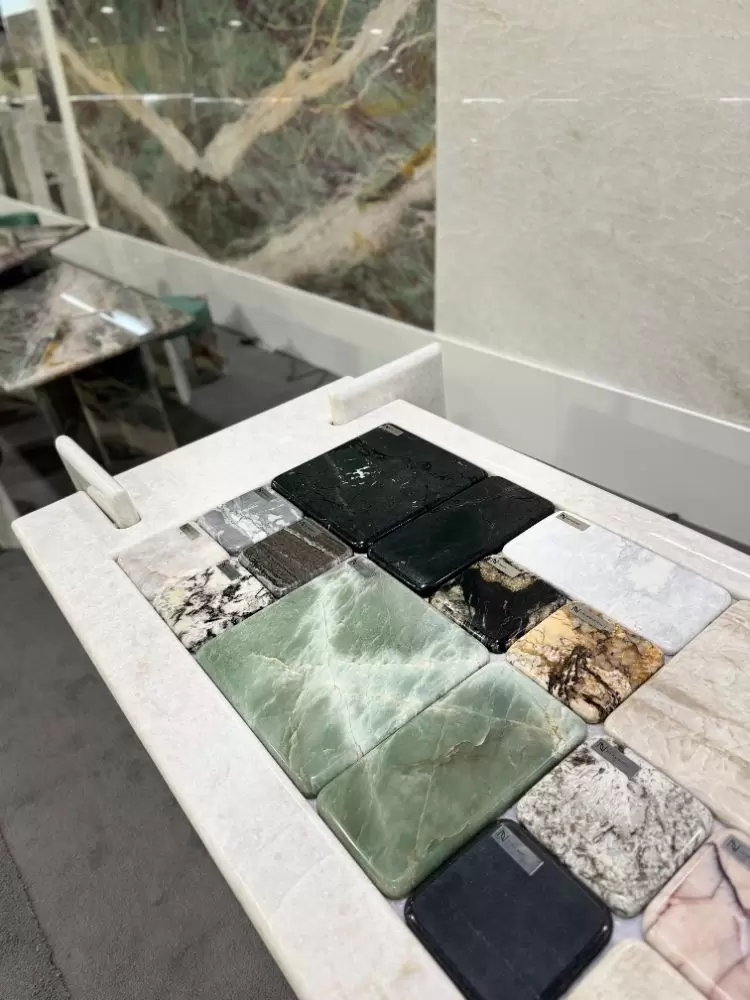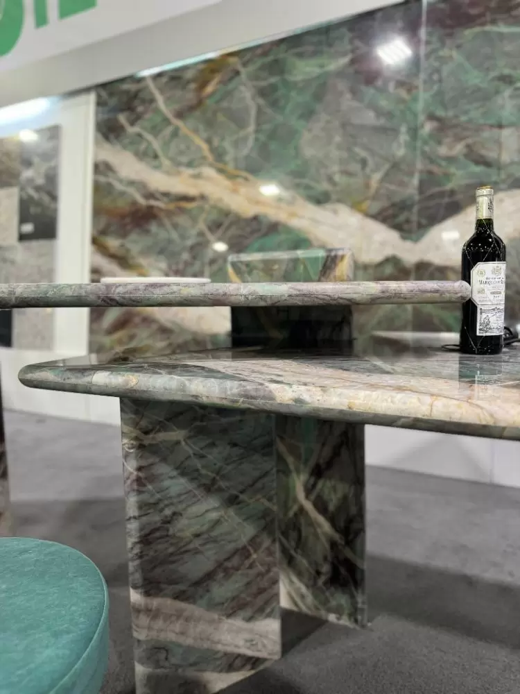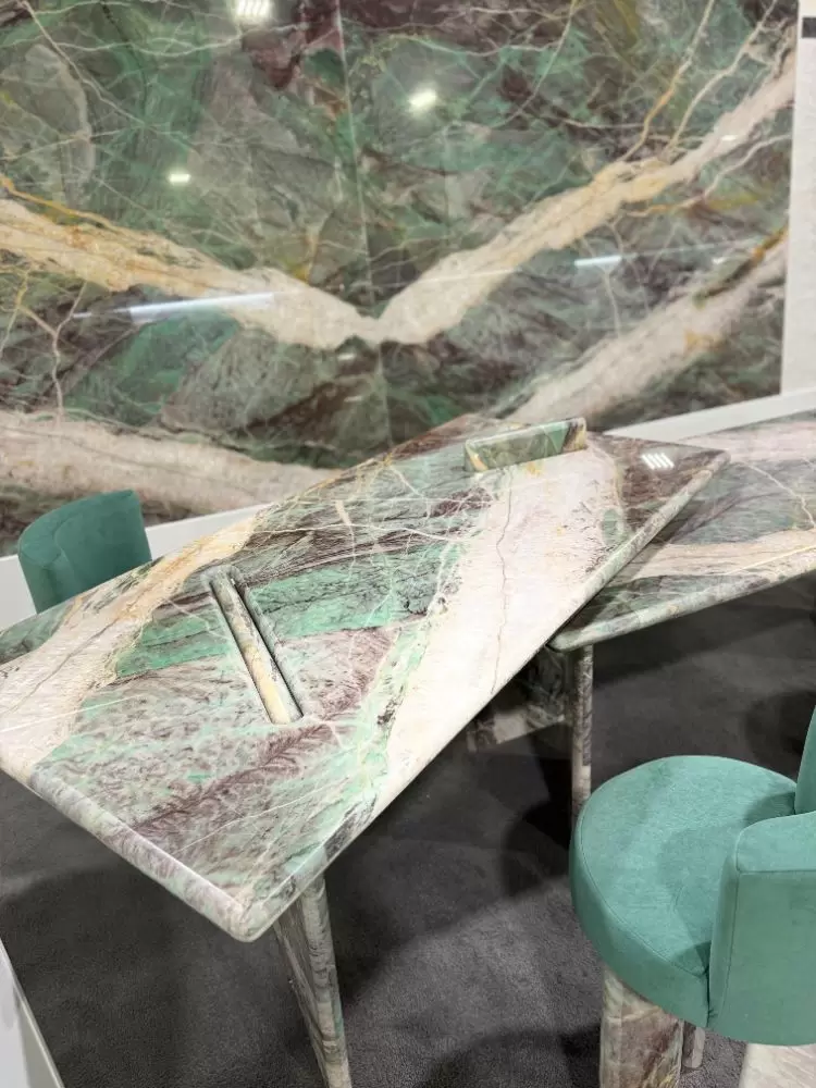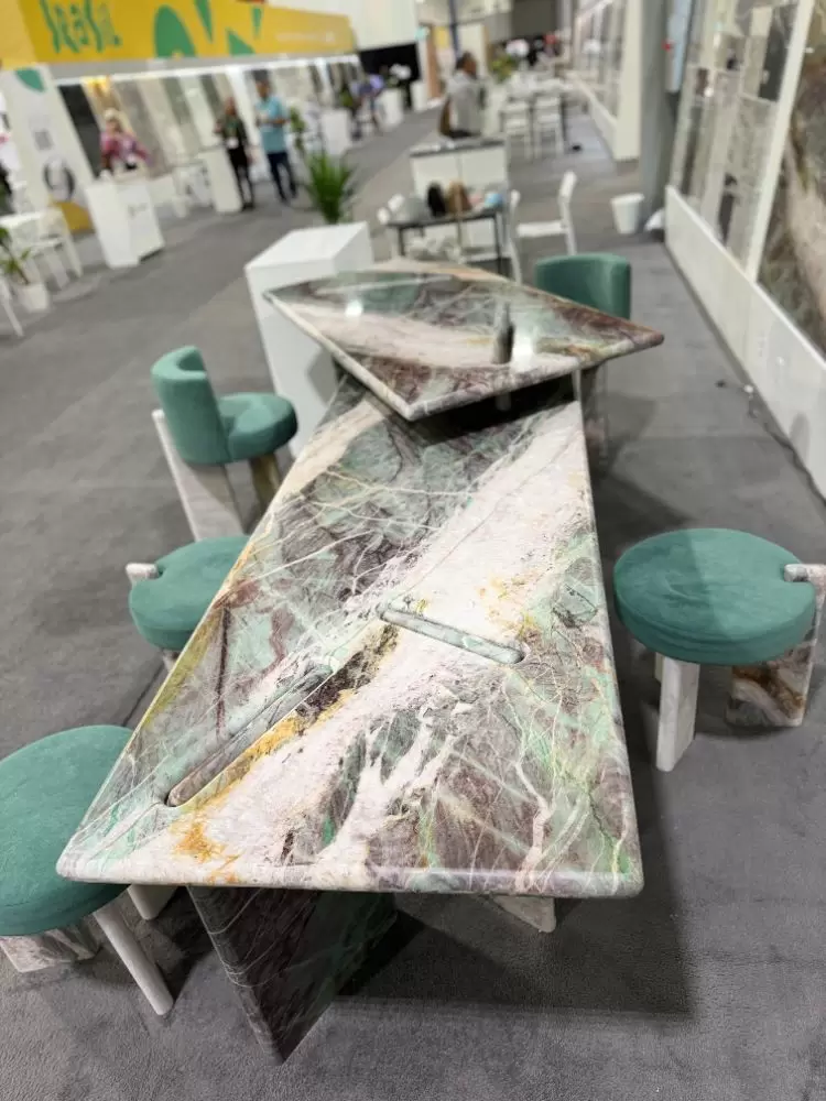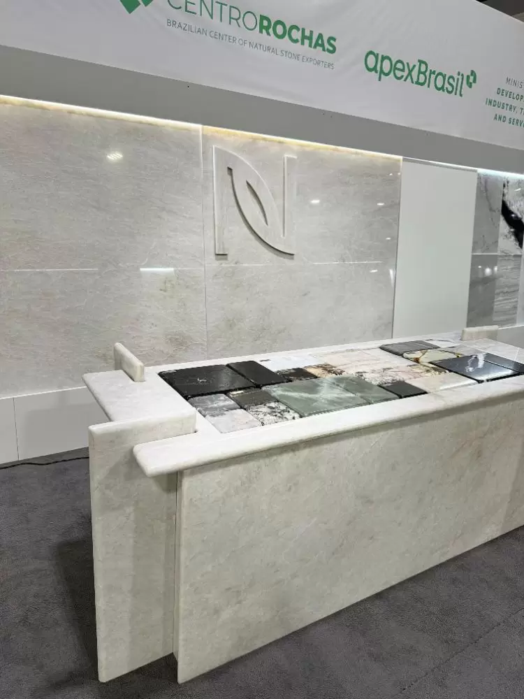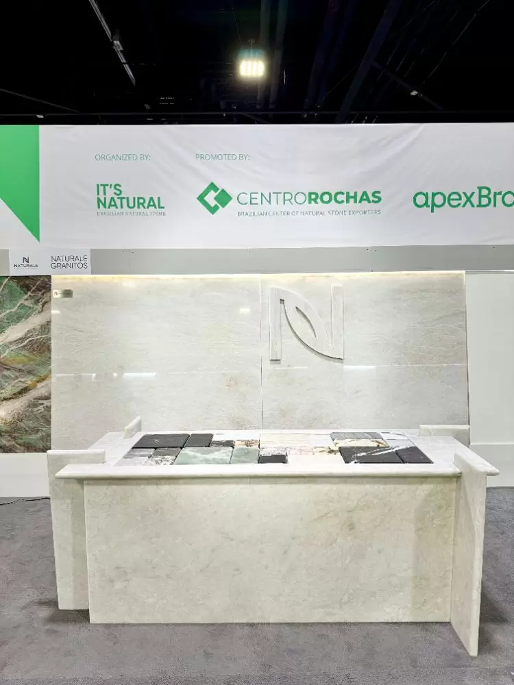 Concluímos a nossa participação em mais uma feira internacional do setor de rochas ornamentais, com sucesso! A Coverings deste ano aconteceu na cidade de Atlanta (USA), entre os dias 22-25 de abril e os grandes destaques exibidos no nosso estande, foram: uma mesa moderna e sofisticada feita com o nosso quartzito Jasper Green e um balcão incrível feito com o nosso elegantíssimo Crystal White. Além dessas obras de arte, o nosso espaço ganhou ainda mais realce com os apoios dos nossos banquinhos, também feitos com as rochas. Para a realização desses projetos, contamos com a maestria da arquiteta Samira Siman e da marmoraria Pedra Limpa Acabamentos.