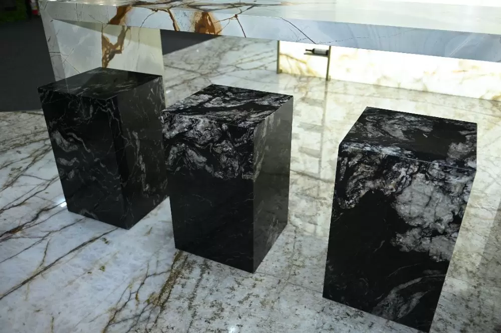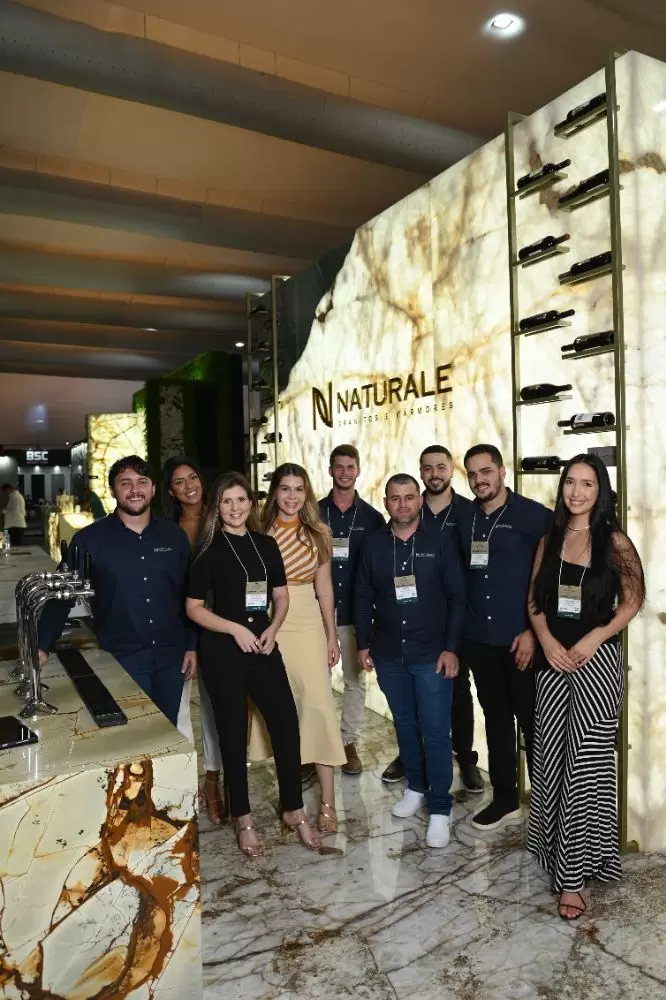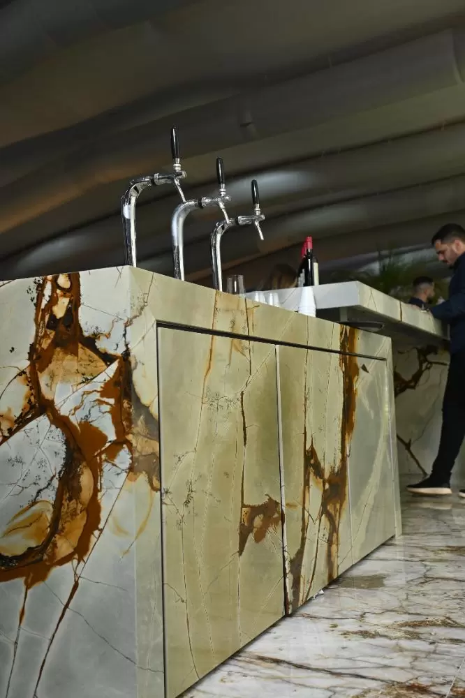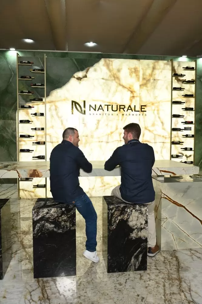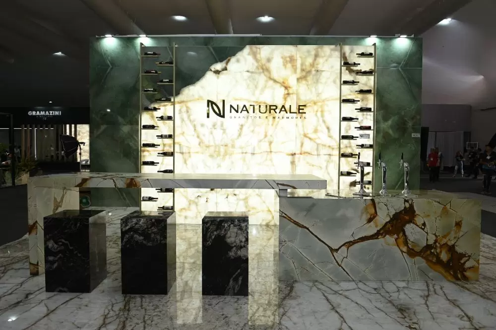 Nossos melhores momentos na Vitória Stone Fair 2024! Nossa adega de Crystal White retroiluminado e nossa bancada de Blue Deep, projetada com chopeiras e armários revestidos em material natural foram grandes destaques.