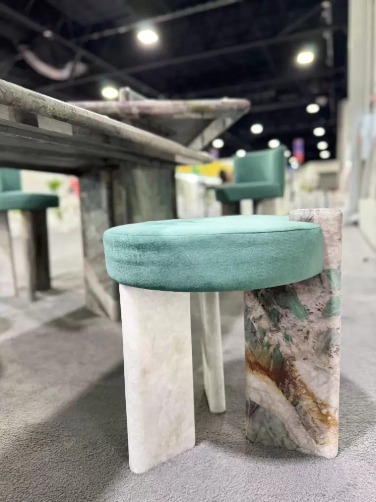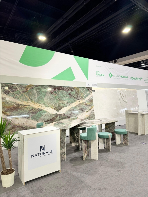 Concluímos a nossa participação em mais uma feira internacional do setor de rochas ornamentais, com sucesso! A Coverings deste ano aconteceu na cidade de Atlanta (USA), entre os dias 22-25 de abril e os grandes destaques exibidos no nosso estande, foram: uma mesa moderna e sofisticada feita com o nosso quartzito Jasper Green e um balcão incrível feito com o nosso elegantíssimo Crystal White. Além dessas obras de arte, o nosso espaço ganhou ainda mais realce com os apoios dos nossos banquinhos, também feitos com as rochas. Para a realização desses projetos, contamos com a maestria da arquiteta Samira Siman e da marmoraria Pedra Limpa Acabamentos.